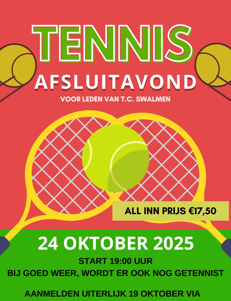 Normaal gesproken wordt dit gedaan met een potje tennis, dit is afhankelijk van de weersomstandigheden, dus hou hier rekening mee. Maar dit zullen we tijdig t.z.t. communiceren.